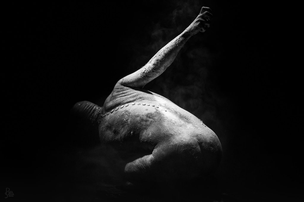 Par l’intermédiaire du surmenage et de l’épuisement, les performeurs se dépassent pour devenir une créature à la fois hybride et humaine. Le Krump apparaît sur le plateau comme un outil exutoire pour les interprètes.