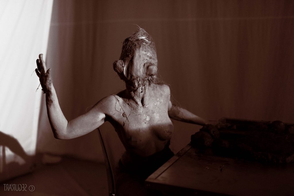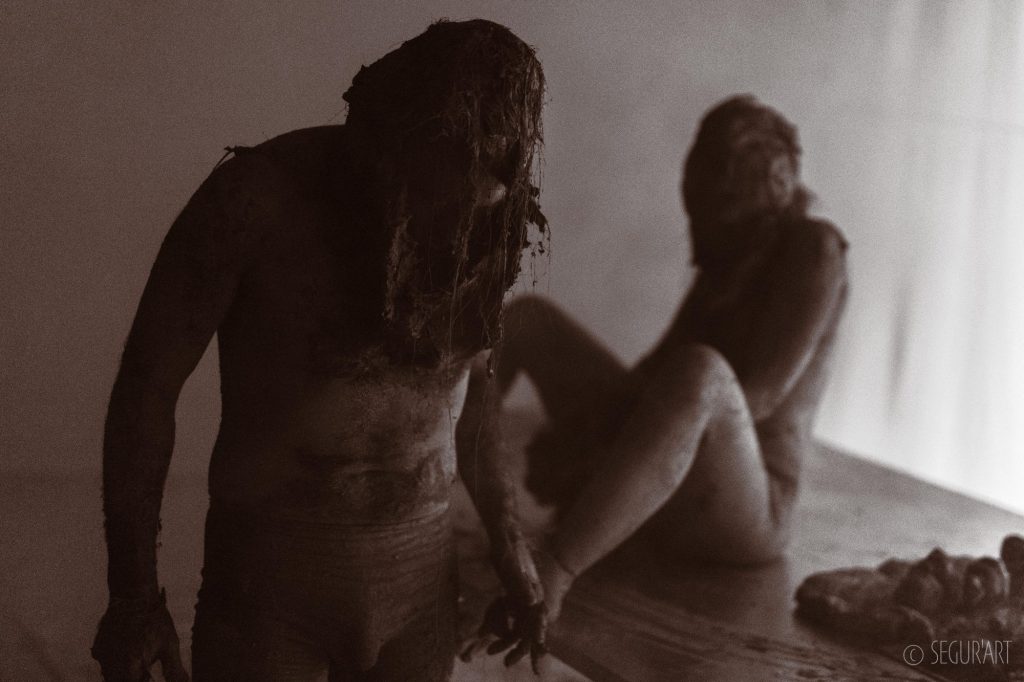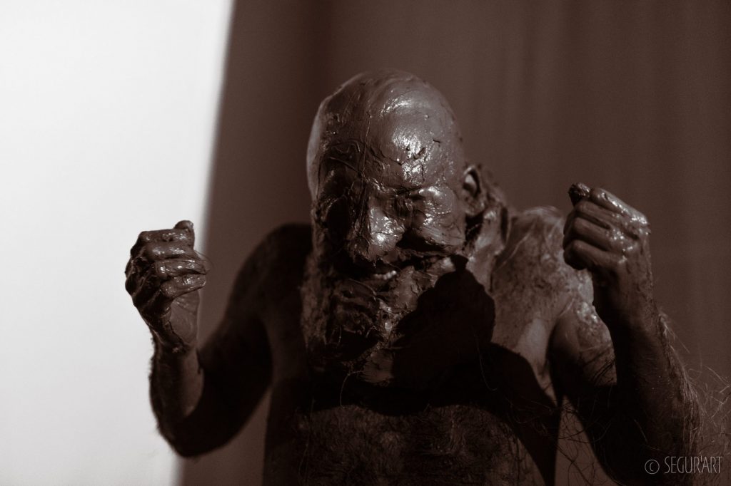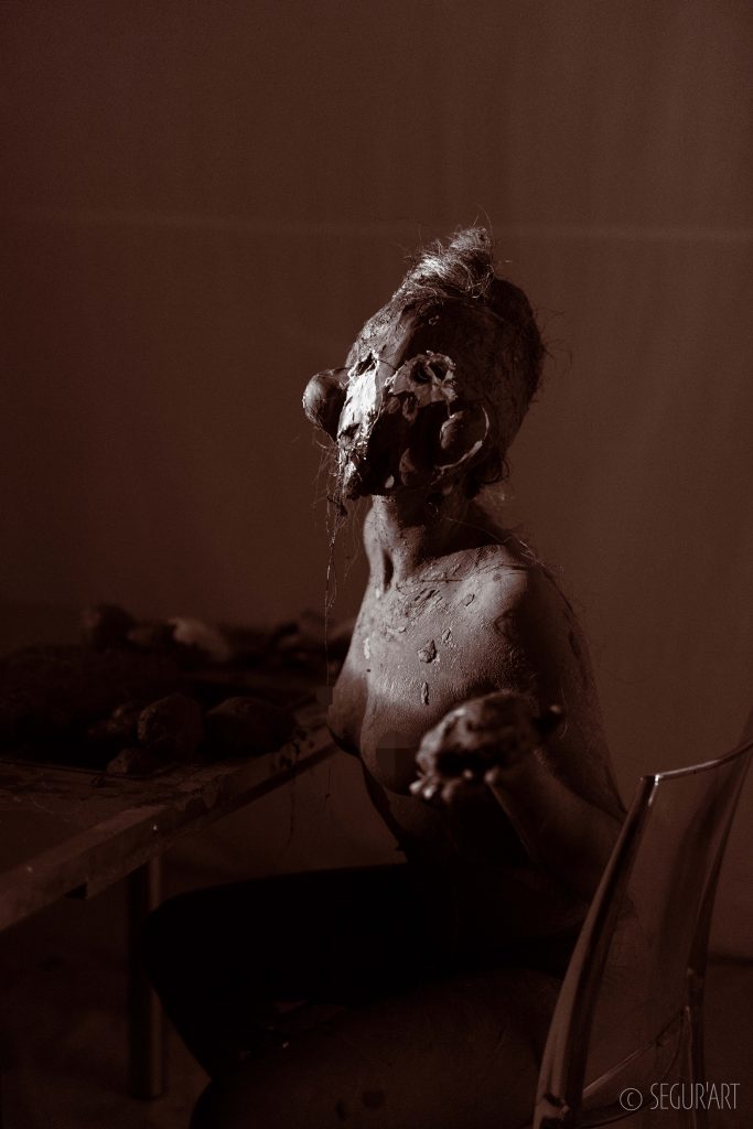 Identidad est le produit d’une expérimentation approfondie sur l’univers de la performance sensible, celle qui fait appel aux sens des performeurs, en ce cas il s’agit de développer une expérience physique par le biais du contact tactile de l’argile modelé sur le corps.L’identité, observée en tant que principe de singularité et de continuité dans l’espace et dans le temps, se décline en plusieurs composantes entres autres biologiques et sociales. Au cours de cette exploration, sur l’étude de l’évolution de la nature humaine, l’action même de métamorphose a déterminé le corps scénique comme objet d’expérience à altérer, modeler et transformer.